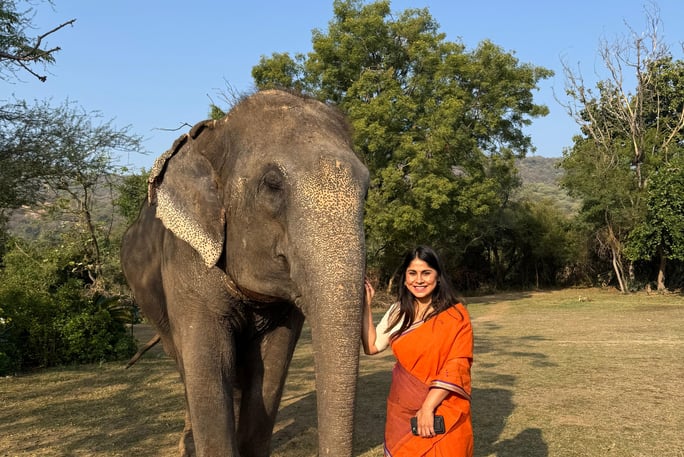 Begin your morning with a heartwarming encounter amidst nature. Led by your personal guide, you’ll be introduced to two rescued gentle giants who now thrive peacefully in their natural surroundings near the resort. As you feed and walk alongside them, listen to stories passed down through generations—tales of royal processions, cultural symbolism, and unique personalities that reflect Rajasthan’s rich heritage. This soulful experience is designed to spark connection and compassion. The morning concludes with a thoughtfully prepared breakfast served in a serene forest setting, allowing you time to reflect and savour the moment.