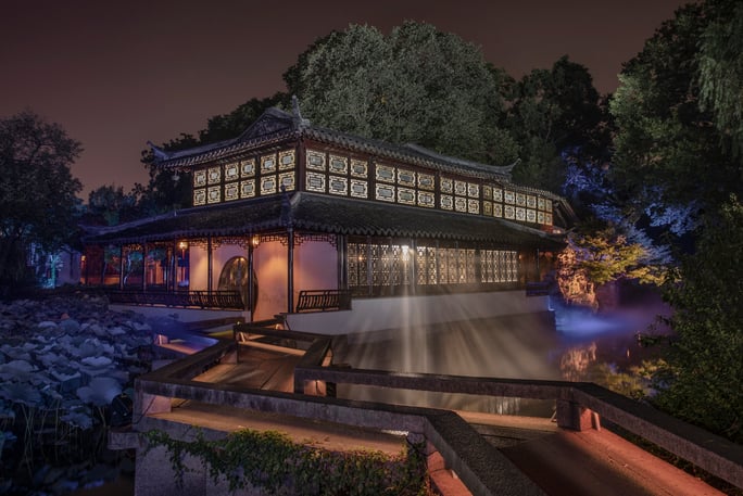 Enjoy a relaxing and memorable night tour of the Humble Administrator's Garden, where the beauty of tradition comes to life. This immersive night tour is inspired by the artistic conceptions of poems, couplets, paintings, and calligraphy from the Four Masters of the Ming Dynasty, as well as the "Twenty-Four Categories of Poetry". Utilizing non-solid media such as light and sound, the experience focuses on synesthetic elements to reimagine the spatial poetics of oriental garden aesthetics.